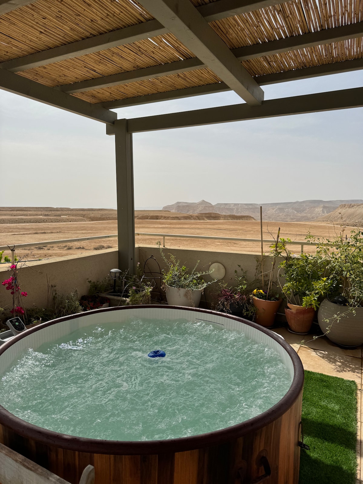מרחב מקסים הממוקם בקומה שניה עם כניסה נפרדת ונוף למדבר. תוכלו להתחיל את הבוקר שלכם עם קפה מול זריחה מרהיבה במרפסת פרטית המשקיפה אל ההרים. תמצאו כאן חדר שינה רחב, פינת עבודה חדר רחצה צמוד ומטבח מאובזר בסמוך. מוזמנים בשמחה אל רמת הנגב לשוטט במדבר- לטפס על דיונת חול, לשכשך בעין עקב או סתם ללכת לאיבוד בנקיקי נחל חווארים.