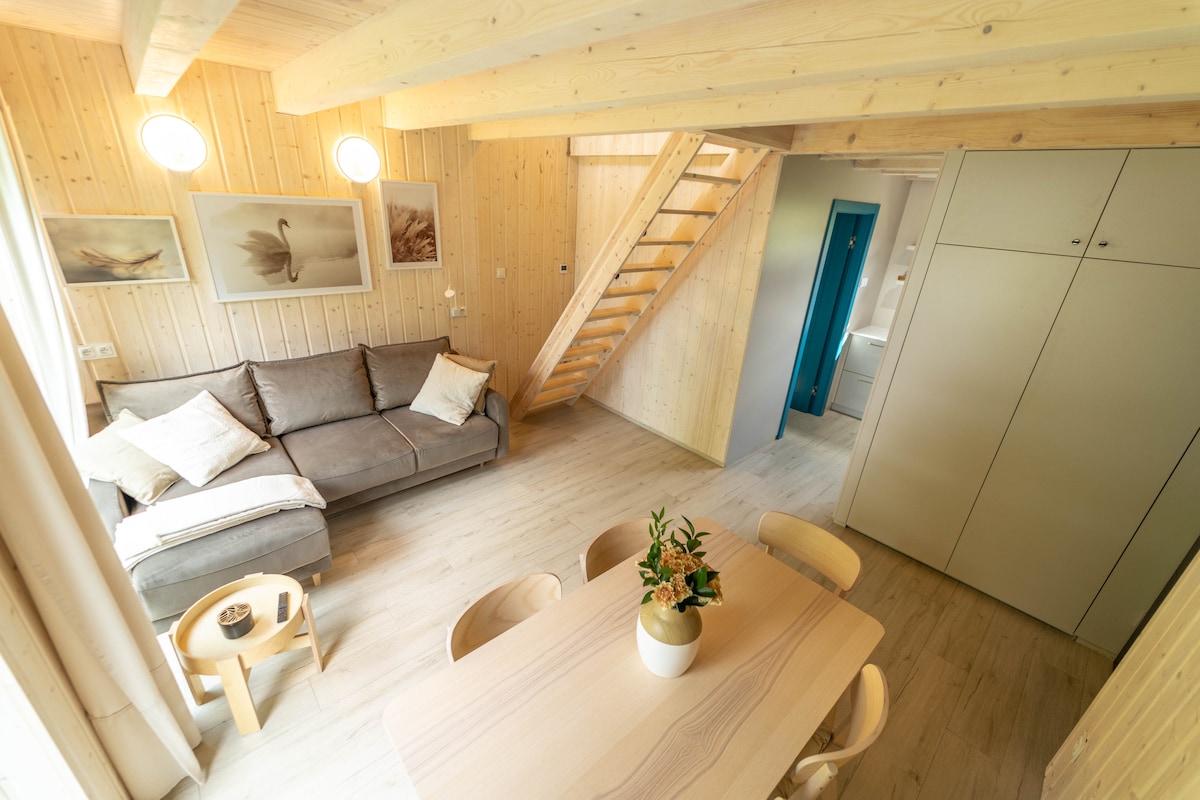 Bienvenido a Lake Chill. 4 cómodas casas justo al lado del lago Mierzyńskie. Las cabañas fueron construidas sobre un antiguo asentamiento de la Edad del Bronce. Este lugar extremadamente encantador ha estado atrayendo a personas durante miles de años que se establecieron aquí voluntariamente aprovechando el lago cercano, los bosques y el río. Este hecho está confirmado por el descubrimiento de rastros de dos asentamientos que funcionaron aquí en la prehistoria durante la construcción del centro vacacional. Con nosotros descansarás y experimentarás hermosos momentos.