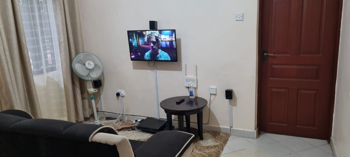 ¡Te damos la bienvenida a tu hogar lejos de casa! Este moderno y acogedor apartamento de 1 dormitorio es perfecto para disfrutar de comodidad y conveniencia en el corazón de Kisumu. Ubicado a solo 5 minutos en coche o a 10-15 minutos a pie de la ciudad. El departamento cuenta con: ✅ Wifi rápido ✅ Televisión para su entretenimiento ✅️ Netflix ✅ Cocina totalmente equipada. Sala de estar ✅ cómoda Diseño ✅ moderno con un ambiente relajante Este espacio ofrece la mezcla perfecta de comodidad, estilo y confort. ¡Esperamos tu visita!