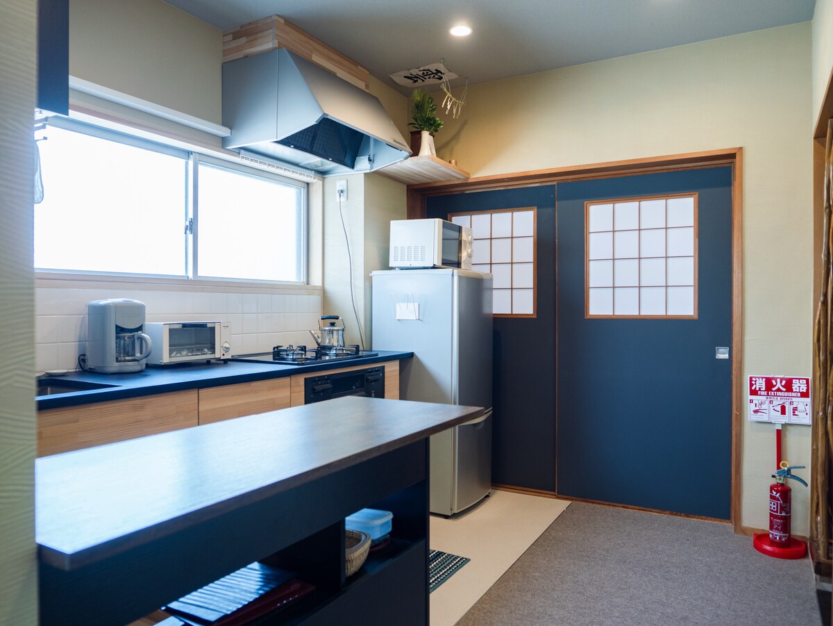 La ciudad de Shibu, el extremo más al sur de la prefectura de Tokushima.Es una ciudad pintoresca con naturaleza prístina cerca del mar, las montañas y el río.Esta casa unifamiliar se encuentra en un vecindario tranquilo justo al lado del ajetreo de la carretera nacional.Ha sido decorado con estilo con interiores elegantes que se han construido durante más de 100 años.Puedes pasar un tiempo relajante con aquellos que están cerca el uno del otro sin dudarlo.En la gran cocina, puedes cocinar ingredientes en un supermercado cercano y disfrutar de la cocina como te gusta.No me atrevo a dejar un televisor.También puedes disfrutar leyendo en silencio o escuchar tu música favorita.Se tarda unos 5 minutos a pie hasta la playa.También puedes jugar con pescado en surf, SUP o buceo.El aroma de Showa todavía permanece, o puedes caminar a través de la ciudad burbuja.Cómo pasar tiempo con la gente.Como anfitrión, estamos aquí para ayudarte a que tu viaje sea cómodo.