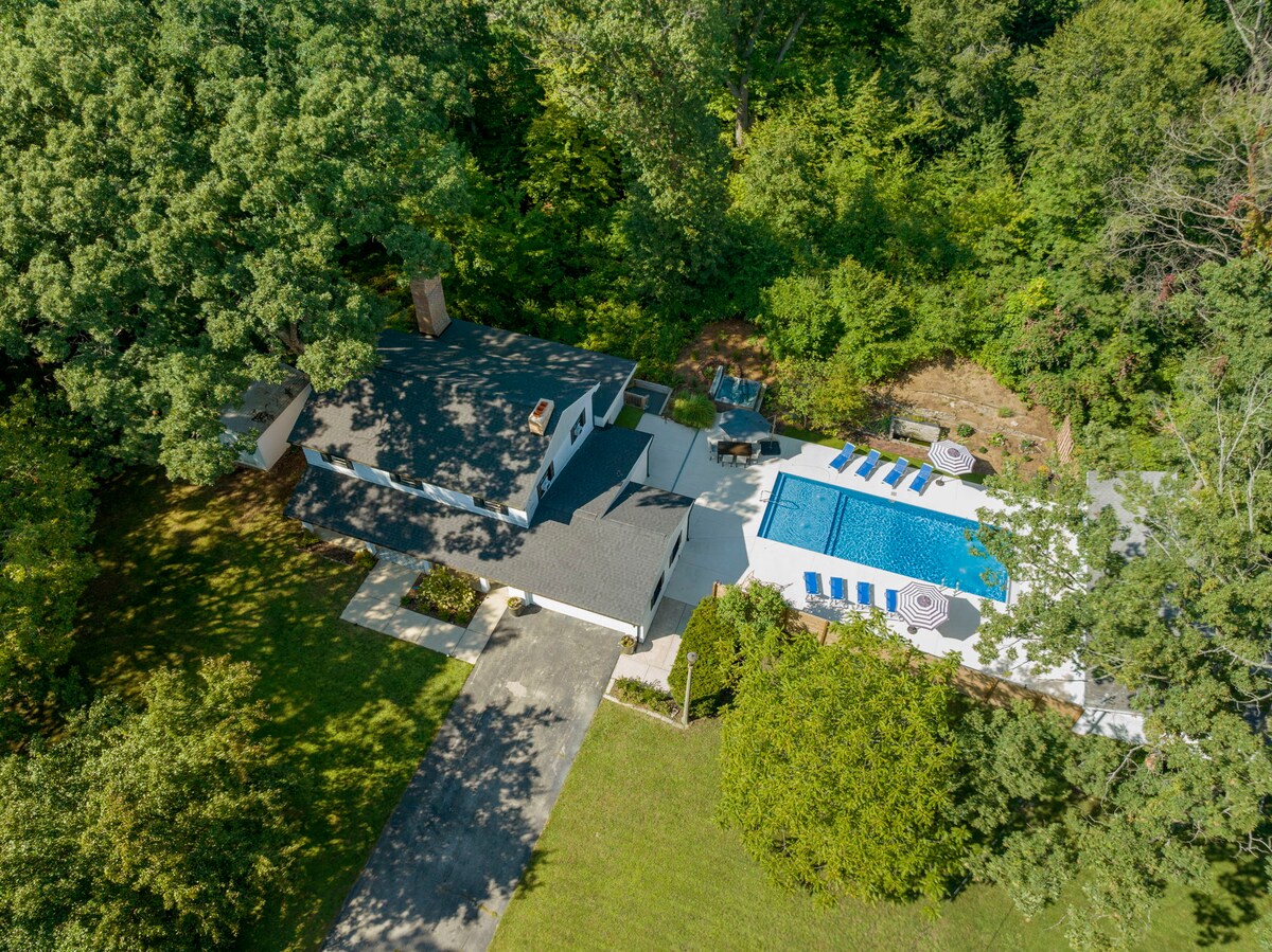 Bibi 's Retreat-Nestled entre 6000 árboles a lo largo de 15 acres de propiedad aislada. Esta es la mejor escapada privada. Ubicada en Niles, MI, la casa ofrece 7 dormitorios verdaderos con mucho espacio para la vida multifamiliar. Estamos a 30 minutos de 15 bodegas y cervecerías. Estamos a 20 min de más de 10 campos de golf y a 20 min de Notre Dame. Ladies Retreat, Golf Getaway o Winery Tours, esta casa es perfecta para grupos grandes.