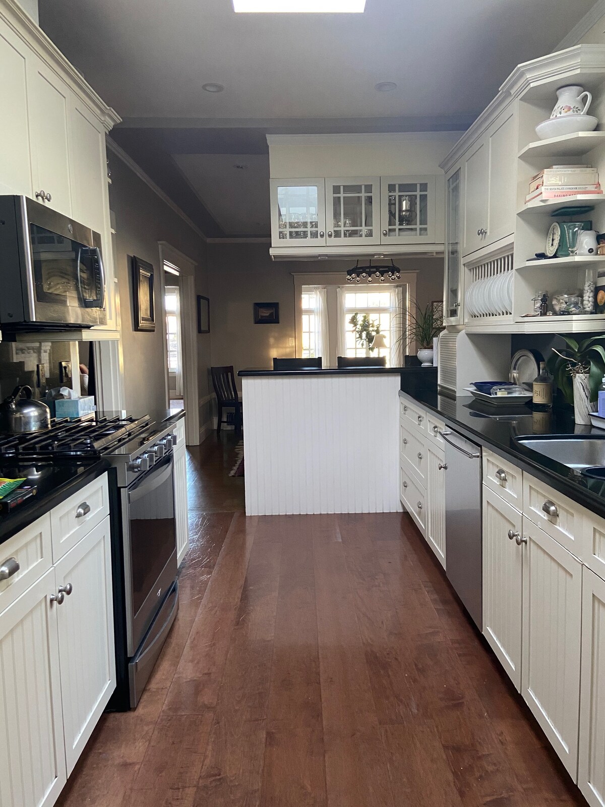 Esta gran suite de 3 habitaciones es parte de mi casa, pero es privada, está separada y cerrada con llave del resto de la residencia. Hay una entrada privada a tu suite desde el vestíbulo del edificio. La suite incluye un comedor/sala de estar con mesa de comedor/trabajo, sofá (se abre a una cama tamaño queen), TV y un pequeño patio. Las puertas francesas separan esta habitación del enorme dormitorio principal lleno de luz (con cama tamaño king). Asiento acolchado junto a la ventana. Gran baño tipo spa, alcoba «kitchenette», vestidor. 560 pies cuadrados más baño, armario y patio.