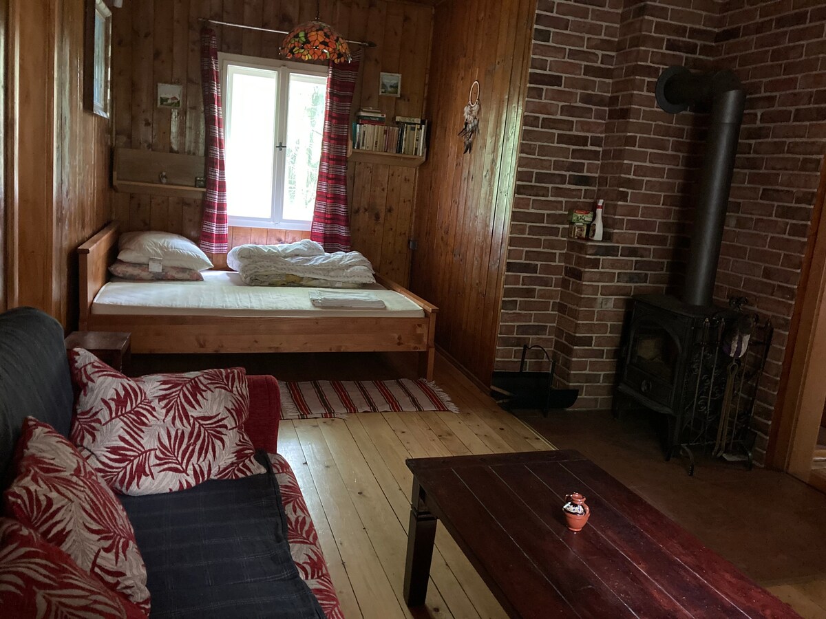 Our wooden house was made by my grandfather 50 years ago. It consists from living room with fire place, folding sofa bed for 2 persons, small kitchen, bathroom and on the first floor there is one bedroom with a king bed and 3 single beds. During your stay in our wooden hut you could see squirrels, forest birds, stag beetle, salamanders, hedgehogs, and different animals... deers come for visit sometimes. It is located in recreational area of Harmónia near Modra.
