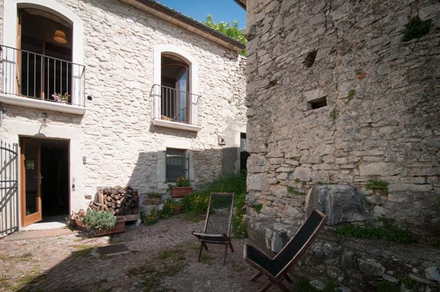 Casa rural de piedra, rodeada por 4 hectáreas de olivares y bosques, a los pies de las Mainarde. Dentro de la propiedad discurre el río Vandra, con posibilidad de baño. Entrada y aparcamiento privado, los propietarios viven en una construcción adyacente a la de los huéspedes, conectada por un patio interior. Dentro de la finca hay un huerto ecológico, árboles frutales y animales de corral.