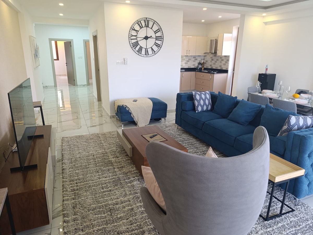 Enjoy our stylish 3BR seaview apartment hosting 8 guests with 4 comfy beds. Fully air-conditioned with a private balcony offering stunning ocean views. Located behind City Mall in Nyali Centre, close to shops, restaurants, and the beach. Features a sound system, high-speed lifts, backup generator, and chef services available on request—perfect for families, friends, or group getaways. 🌊✨