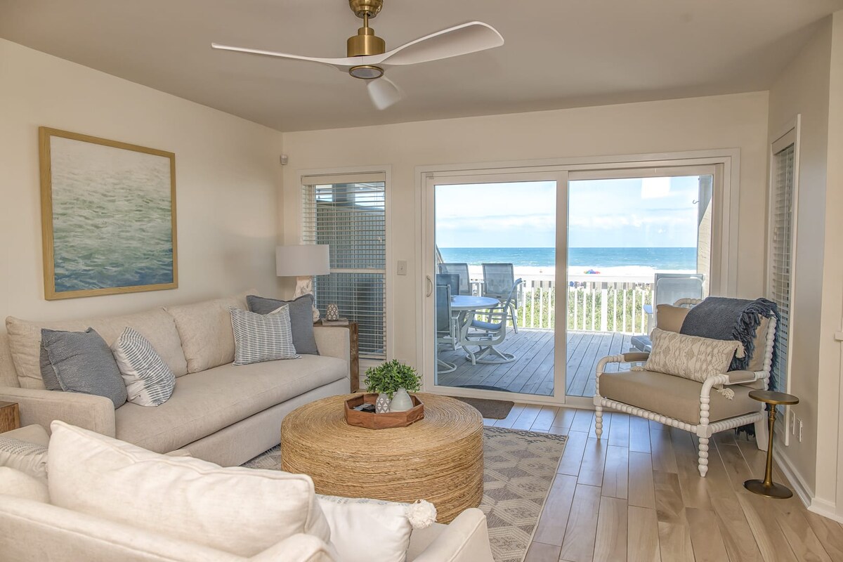 Condominio frente al mar a solo unos pasos de la arena en el extremo norte prístino de Wrightsville Beach, Carolina del Norte. Esta unidad de planta baja en Shell Island Resort proporciona acceso directo al paseo marítimo de la playa, las piscinas interiores y al aire libre, la bañera de hidromasaje, el restaurante completo y el bar exterior. Una pasarela al aire libre conecta la entrada del condominio a la plataforma de estacionamiento, así que no es necesario caminar por el vestíbulo ni usar ascensores; lo que permite un distanciamiento social seguro durante toda tu estancia.