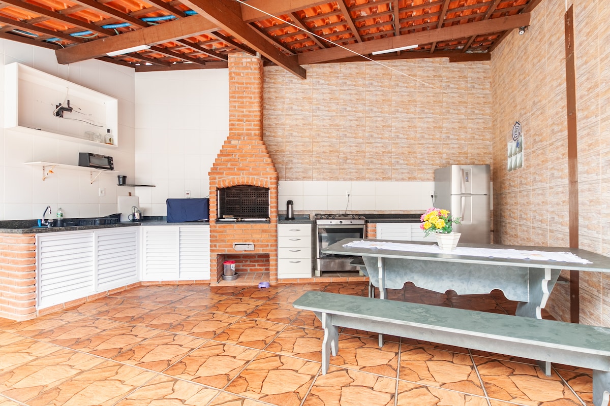 Edículo sencillo y acogedor, situado a solo 400 metros de la playa, cerca de Extra Ocean, Ocean Fair y en la calle de la estatua de Iemanjá. Está a 1,5 km de la estación de autobuses. Tiene capacidad para 4 personas, con 1 cama matrimonial y 1 litera. Ofrecemos lo básico: fogones, nevera y utensilios. Debes llevar mantas. El edículo está en la parte trasera con un patio compartido, pero el ambiente es tranquilo y con total libertad. Vivo en el sitio y ayudo con lo que necesites. Vacante disponible. Aceptamos mascotas.