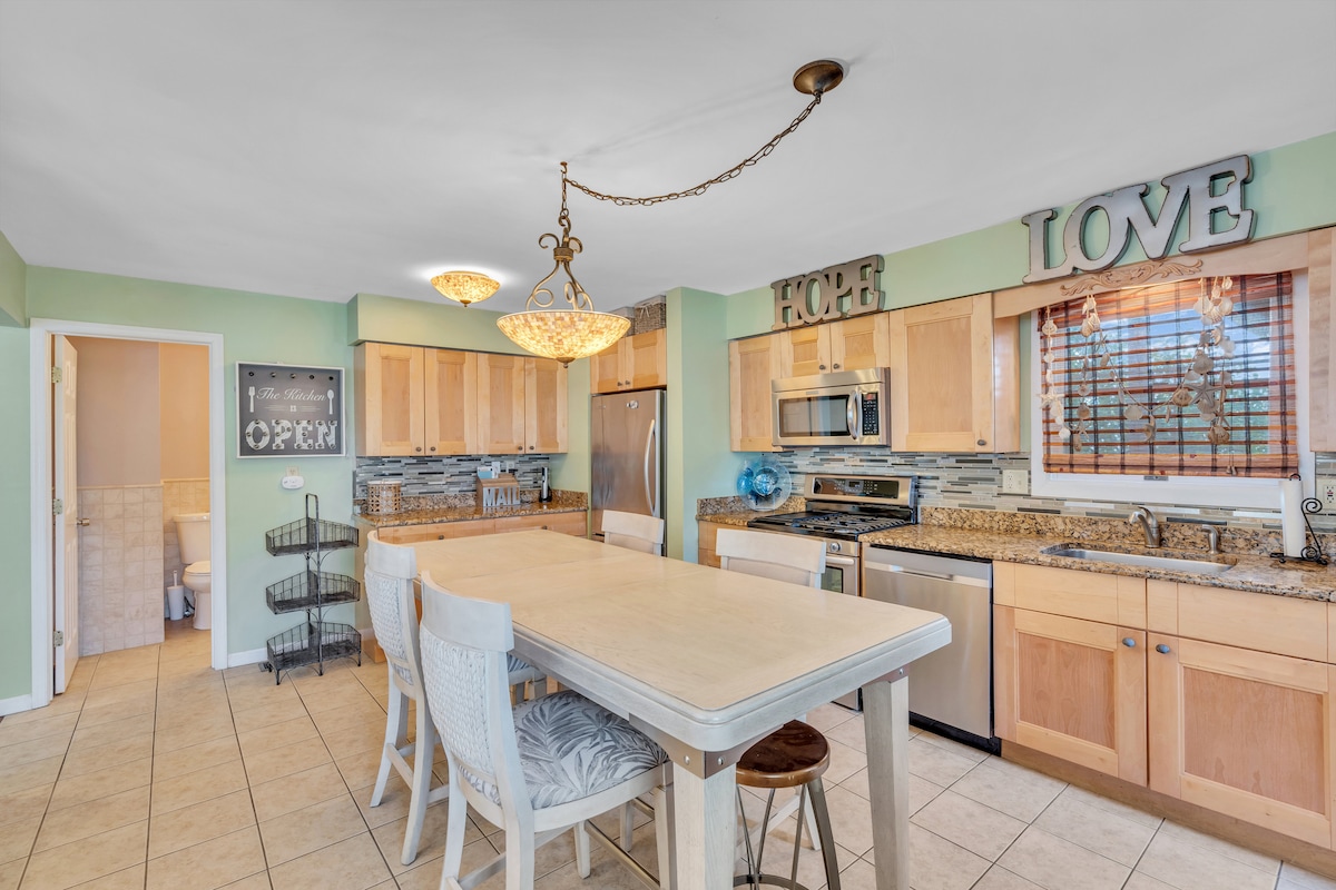 Perfecto para pasar tiempo en la playa con amigos y familiares. Estás alquilando el segundo y tercer piso de una casa de 2 familias. El primer piso es un apartamento privado para uso del propietario y alquiler ocasional. El segundo piso cuenta con salón y cocina separados, baño completo, dormitorio con cama queen. El tercer piso ofrece 3 dormitorios más (uno con cama queen y 2 con sofás cama), baño completo, lavadora y secadora, cuarto de lavado y una fantástica terraza trasera. El cuarto dormitorio también funciona como estudio con TV y nevera. Gran zona de patio trasero. Aire acondicionado central y sistema dividido.