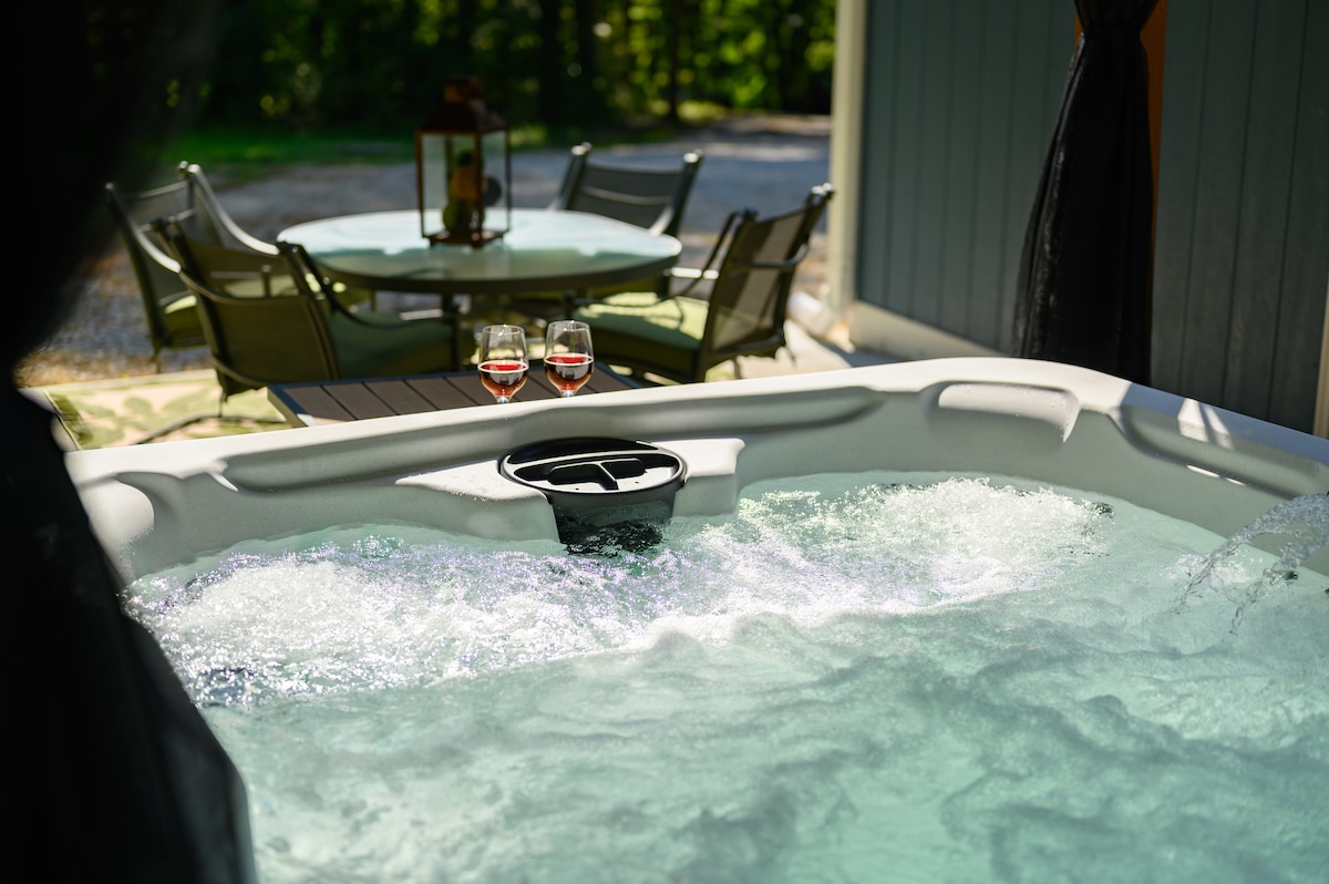 Cabaña de vacaciones en un complejo vacacional | Jacuzzi • Piscina