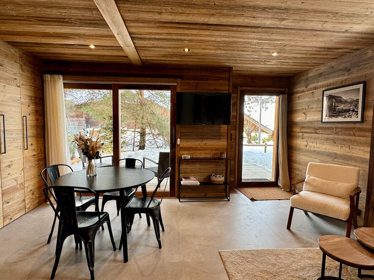 ✨Brand New 2025 built in Megève✨ 4BR, 3.5BA duplex at the Chalets of L’Éclat des Vériaz, nestled in a 3-hectare park with Mont Blanc views. Indulge in the spa with indoor/outdoor pools, sauna, hammam, jacuzzi, salt cave, gym & lounge. Families will love playgrounds, kids’ playroom, tapas lounge & massage room. 1.3 km (15'stroll/7'free bus/3'car) from Megève’s ski slopes, boutiques, cafés & gourmet restaurants!