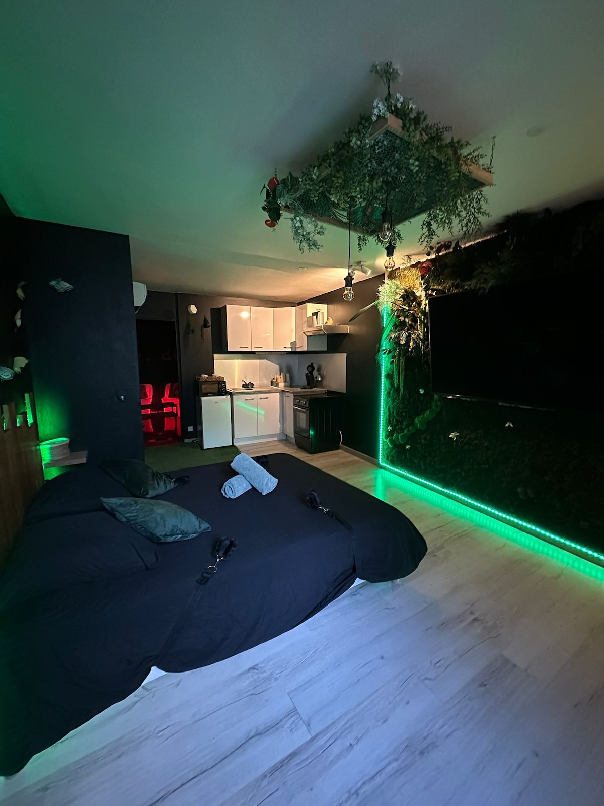 ✨️ Bienvenu dans la Suite Intemporelle✨️ "Un lieu où le temps s'arrête " Ouvrez la porte et transportez vous dans une atmosphère qui évoque les galaxies lointaines , la douceur des nuits étoilées, et la garantie d'une escapade unique 🌖 Laissez vous guider dans un voyage intime et sensoriel mélant raffinement , détente et évasion. Oubliez le monde extérieur le temps d'un instant Un voyage à deux, hors du temps , qui commence ici 💫