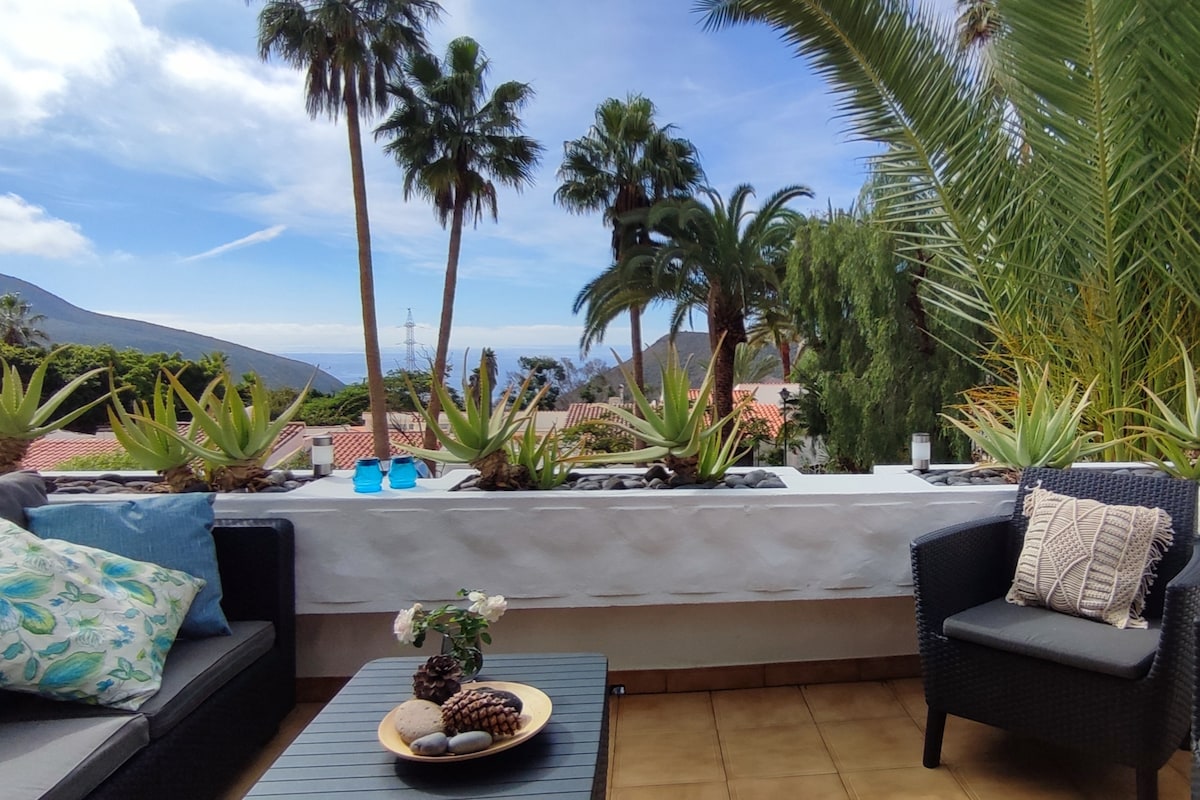 A quince minutos en coche de las playas de Los Cristianos y Las Américas, y unos treinta minutos del Parque Nacional del Teide, está nuestro luminoso y confortable apartamento en medio de la naturaleza y en un entorno rural y tranquilo. Consta de una bonita habitación doble, zona de entrada con sofá cama, cocina americana, un baño con plato de ducha y una bonita y soleada terraza con unas vistas impresionantes de la campiña, la bahía de los Cristianos y Playa de las Américas.