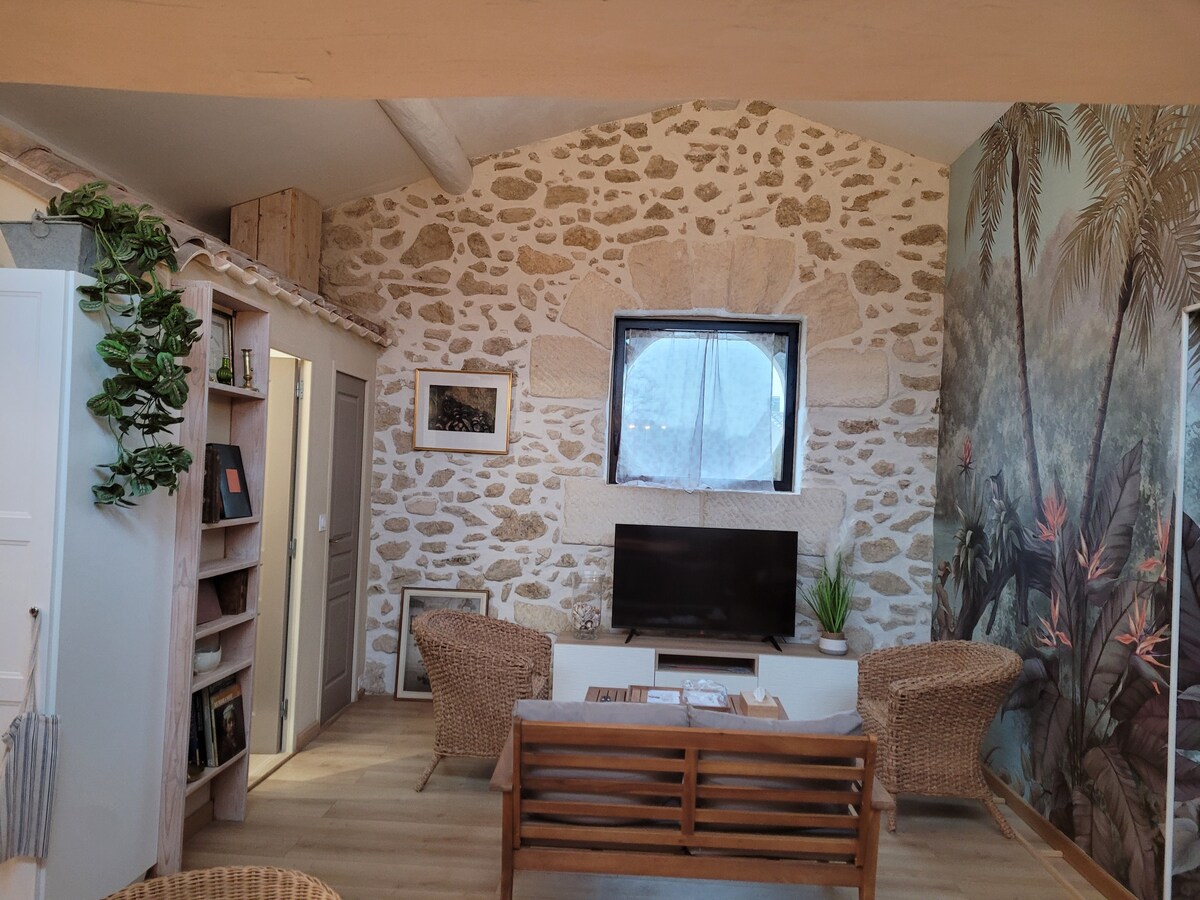 Pequeño apartamento, acceso privado, 17 m2, estilo estudio con cocina equipada, pequeños electrodomésticos, todo para cocinar, lavadora, cuarto de baño con ducha, pequeña terraza privada, ropa de cama y toallas, televisión, wifi, aire acondicionado reversible. Solo tiene que dejar sus maletas... Situado en el corazón del pueblo, con todos los comercios y profesionales de la salud cerca. Ideal para una pareja , de vacaciones, para un tratamiento termal en Balaruc les Bains...