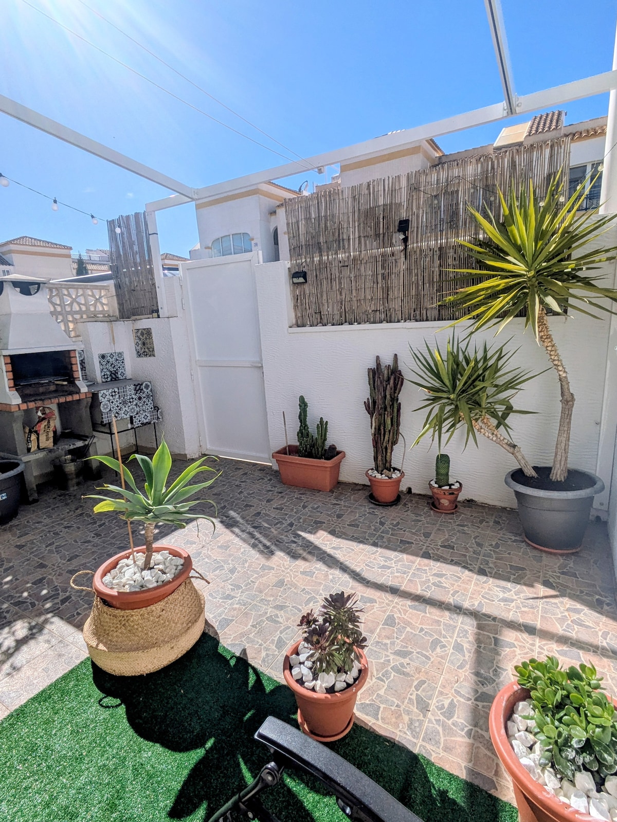 Casa mediterránea-Chillout y soleado patio con BBQ. Acceso a 3 PISCINAS en una urbanización tranquila cerca de todos los servicios y de una de las mejores playas del mediterráneo. Aire Acondicionado y WIFI - SPA BALNEARIO- DE PAGO muy cerca. Aparcamiento al lado de la casa para residentes. El mobiliario,la ropa de cama y la decoración han sido seleccionados cuidadosamente para que disfrutes de una estancia única conectada con el MEDITERRÁNEO !