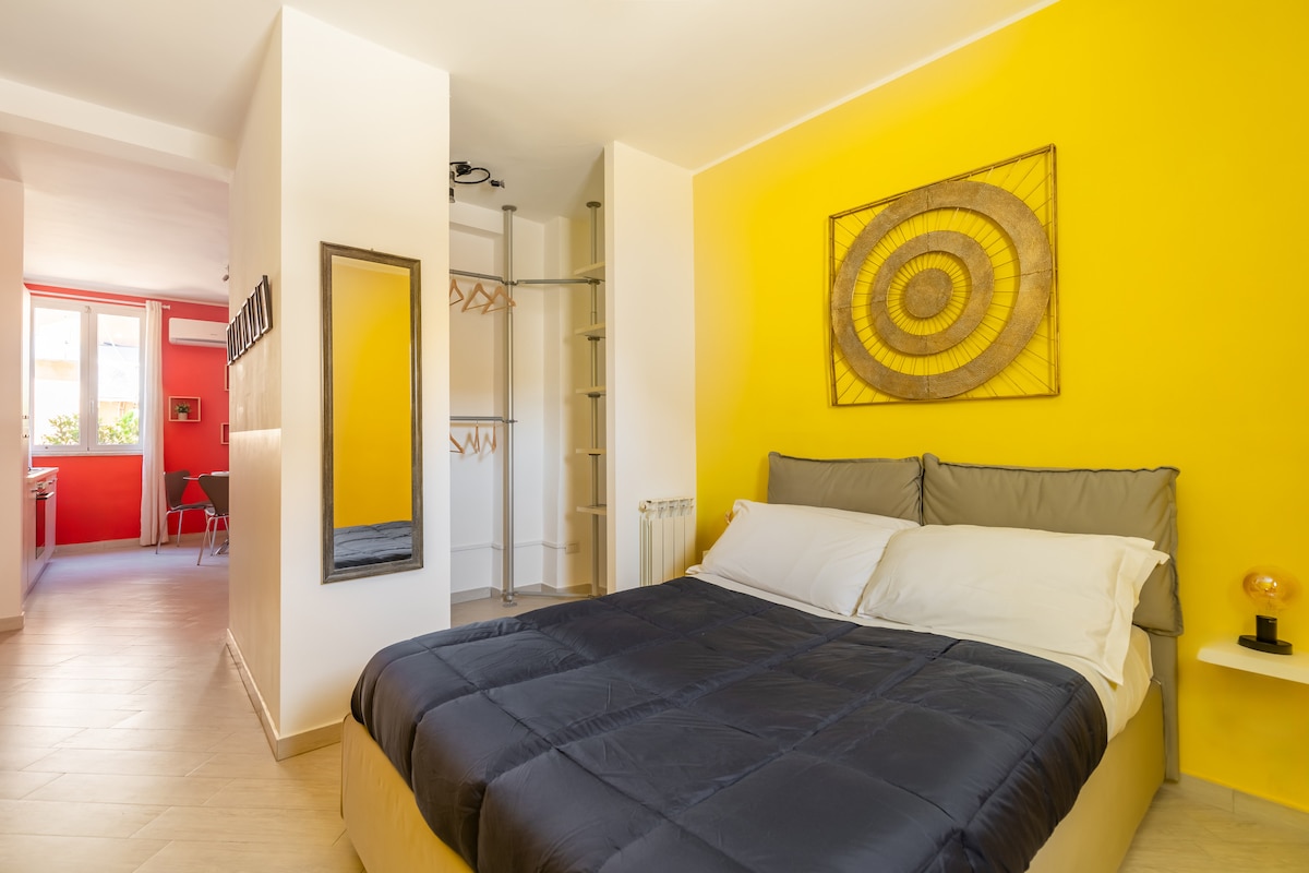 Suite verde con plantas, balcón privado + rincón de cócteles + baño + cocina americana. Posición estratégica: a 1 cuadra del metro (2 paradas al Coliseo) y la estación de tren con tren directo hacia y desde el aeropuerto de Fiumicino y la estación de tren de St Pietro (Vaticano). Una lujosa ducha abierta en la habitación junto a la cama y un gabinete secreto de cócteles en la terraza. El barrio es el mejor para comer y beber. Una suite independiente en un apartamento con otras 2 suites independientes. Depósito de equipaje.