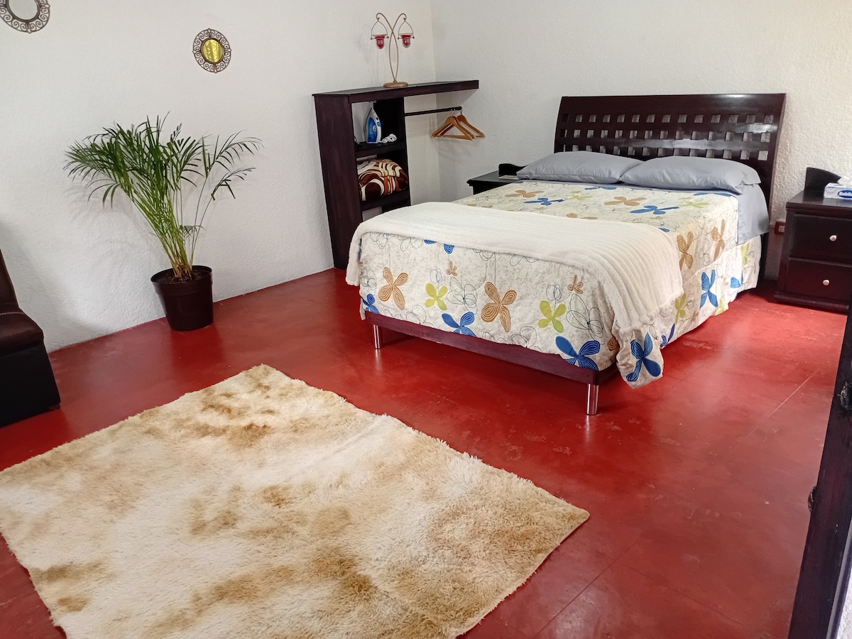 Disfruta de la sencillez de este alojamiento sobre la avenida principal de la colonia. Ideal para profesionistas, estudiantes, maestros que visiten la universidad de Chapingo. Cuenta con una recámara con cama matrimonial, Smart TV. Sala-comedor con cocineta con parrilla y gas disponible, refrigerador y microondas. Baño privado. En la planta baja hay una tienda miscelánea y una cocina de comida económica. No contamos con estacionamiento