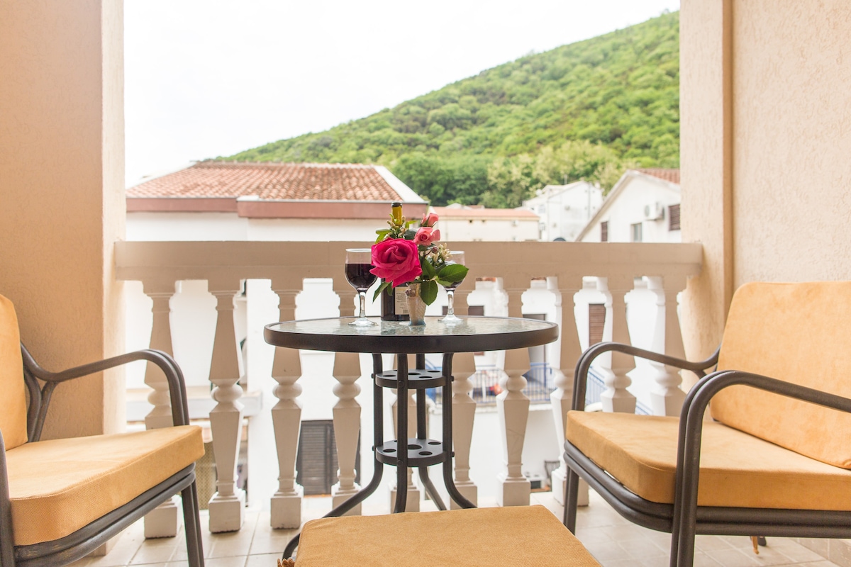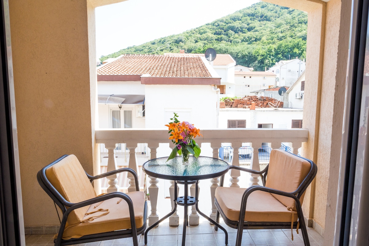 El apartamento está a 150 metros de la playa y a 15 minutos a pie del casco antiguo, que está bajo la protección de la UNESCO. El departamento es muy cómodo con cocina equipada, wifi gratuito y estacionamiento privado. Mercado, panaderías, comida rápida se encuentran cerca y la estación de taxis/autobuses también. El hospital y la farmacia están a 50 metros de la casa. Distancia a los aeropuertos: Tivat 5 km, Podgorica 40 km y Cilipi (Croacia) 42 km. El lugar es muy tranquilo. El apartamento tiene una gran terraza con hermosas vistas al mar.