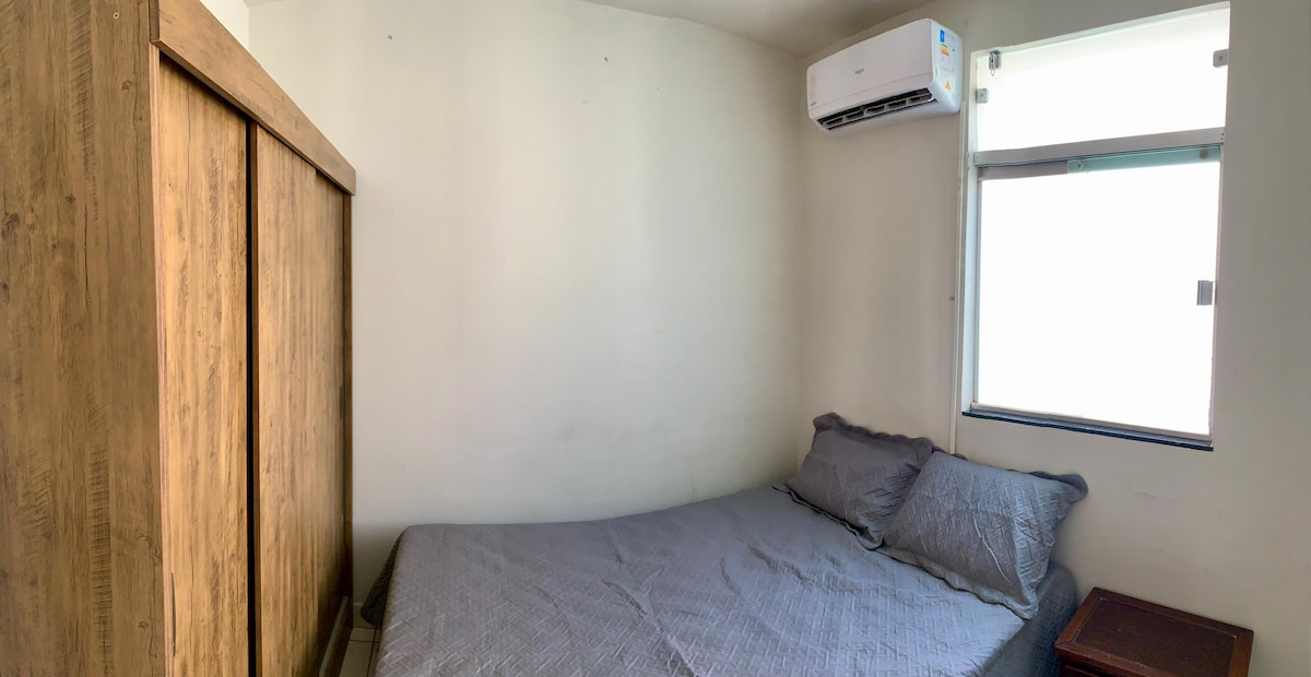 Apartamento en planta baja, con aire ACONDICIONADO y caja fuerte en el centro de Montes Claros (Av. asistente de Av. Esteves Rodrigues) con portero las 24 horas y todo equipado con: nevera, aire, lavadora, licuadora, ventilador, 2 tendederos, 1 cama doble, 2 camas individuales, ropa de cama y utensilios de cocina.