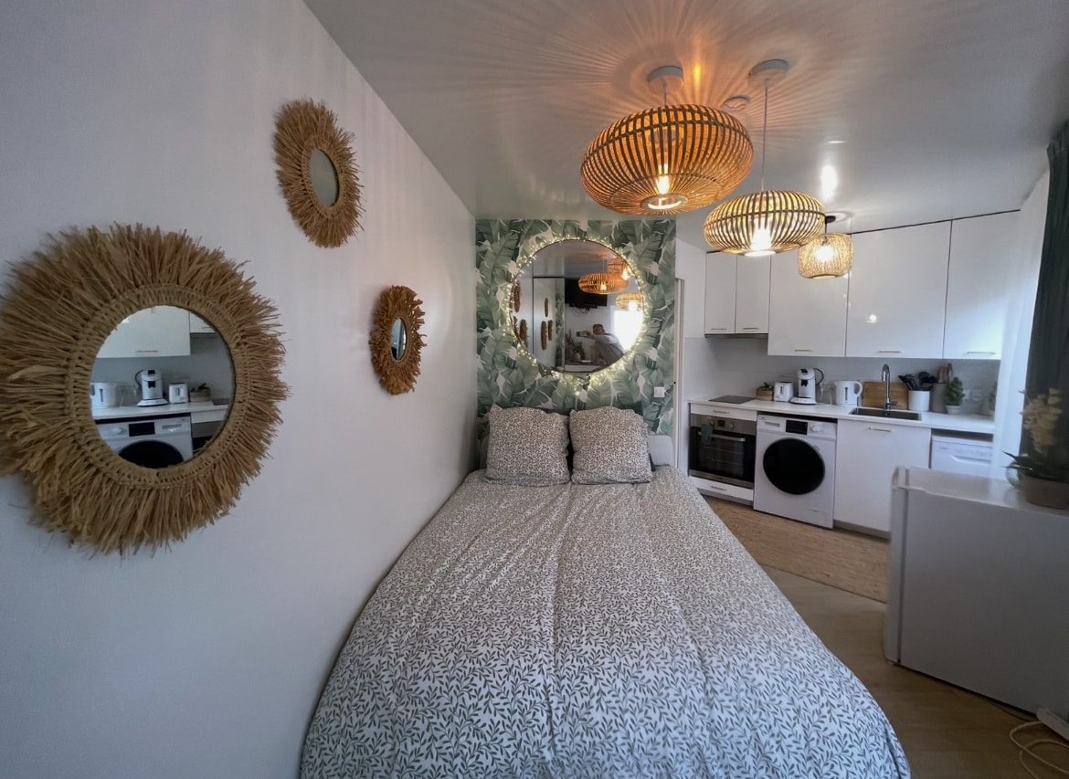 Aux portes de Disneyland et de Paris, venez profiter d'un séjour inoubliable dans ce havre de paix ouvert sur ses extérieurs. Baignée de soleil, une magnifique terrasse ensoleillée vous offre un jacuzzi, un espace barbecue et un chaleureux bain de soleil. Atypique, ce petit loft offre un magnifique espace de vie ouvert, où les parents pourront se reposer face au jacuzzi. A l'étage, une chambre indépendante est aménagée (avec wc et salle d'eau).