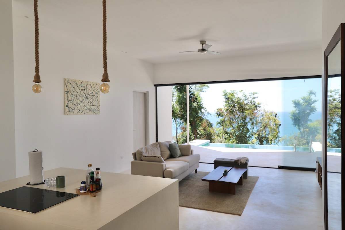 Esta villa de estilo moderno de nueva construcción es un lugar perfecto para relajarse y disfrutar de las impresionantes vistas al océano y a la costa. Este moderno diseño abierto con puertas plegables totalmente abiertas te permitirá disfrutar plenamente del paraíso, pero con la comodidad de tu hogar. Nuestra villa se encuentra en la cima de la montaña y solo con acceso privado cerrado. Nuestros cuidadores de la propiedad viven en la propiedad para garantizar que nuestros huéspedes reciban el mejor servicio y seguridad y estén disponibles si es necesario en cualquier momento. ¡Te damos la bienvenida al paraíso!