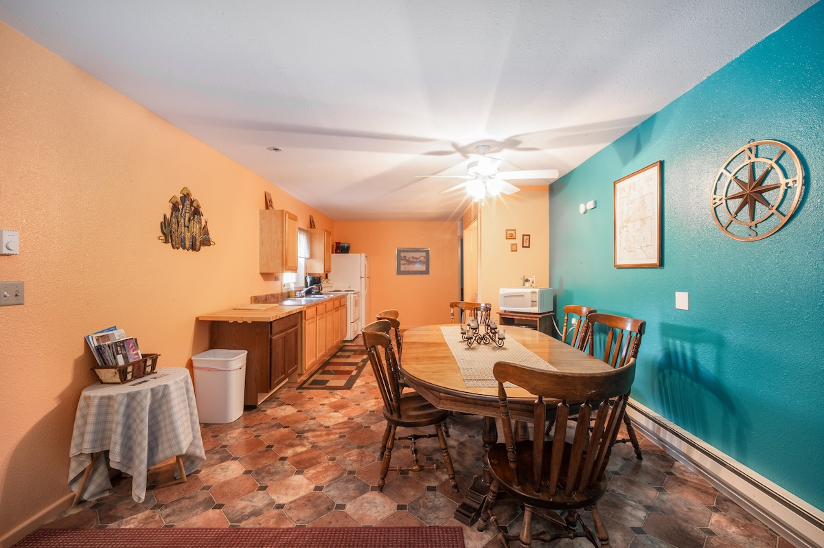 Te damos la bienvenida a la casa de huéspedes Valle Verde. Esta acogedora y tranquila unidad de dos dormitorios y un baño de 900 pies cuadrados en el segundo piso se encuentra en 4 acres de soledad en el valle de Mancos. ¡La propiedad tiene unas vistas geniales de La Platas y Mesa Verde por cada ventana! Hay electrodomésticos de tamaño eficiente de acero inoxidable y w/d en la unidad. A solo 15 minutos del centro de bienvenida del Parque Nacional Mesa Verde, rutas de senderismo de la zona y ciclismo de montaña de clase mundial en Phil's World. ¡Y a solo 7 minutos en coche del histórico centro artístico de Mancos!