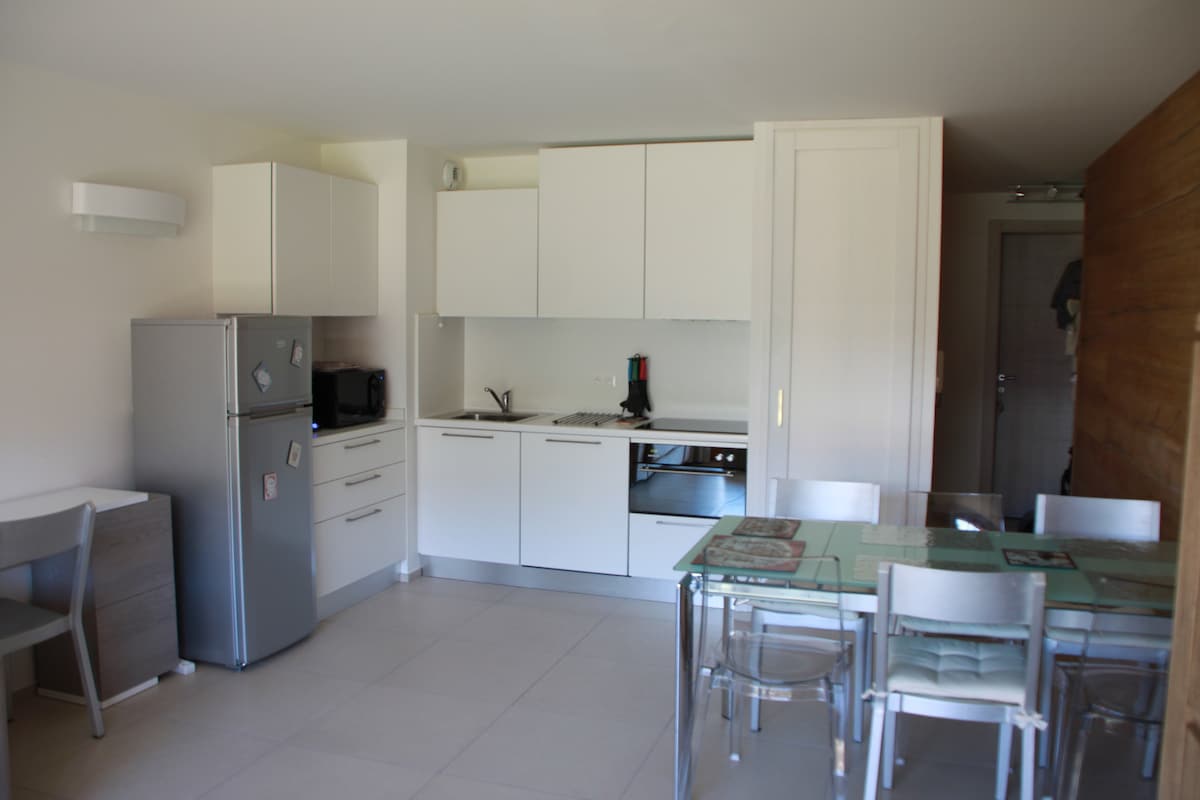 En la planta baja, apartamento de 55 m2, orientación sur, amueblado en un estilo a la vez moderno y de montaña. Vistas a las cumbres. Amplia sala de estar con sofá, TV de 127 cm. 2 dormitorios con camas de 160 cm, grandes armarios y roperos. Una habitación con TV. Terraza y jardín de 60 m2. Para su comodidad, además de los equipos básicos, encontrará hervidor de agua, tostadora, aparato de raclette/parrilla/crepera, aparato de sándwich/gofres...La limpieza al final de la estancia está incluida.