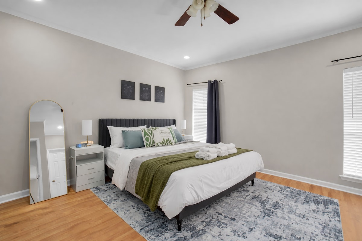 ¡No fiestas! *Lee las normas de la casa antes de reservar* Nuestra acogedora y moderna casa se encuentra en el corazón de Montgomery, Alabama, rodeada por el parque Woodmere y a poca distancia a pie del Teatro y Museo de Shakespeare. La mayoría de los destinos están a 5-10 minutos. (8 millas) 9 minutos hasta el Museo Legacy y la capital del estado. A 10 minutos en coche del zoológico de Montgomery. A 1,3 km, 1 minuto en coche o 15 minutos a pie del Parque y Museo de Arte de Shakespeare. A 20 minutos en coche del Wind Creek Casino Wetumpka.