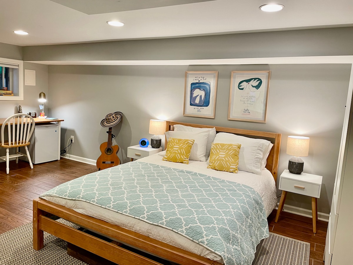 Departamento en el sótano impecable con entrada privada, zona de cocina privada, baño privado, cama tamaño queen y sofá futón de tamaño completo. Convenientemente ubicado: a 0,8 millas de la parada de autobús más cercana, a 2,6 millas de la estación de metro de Wheaton y a 11 millas de Washington, DC, ¡este apartamento tiene todo lo que necesitas! Barrio residencial tranquilo con estacionamiento gratuito en la calle. ¡Tenemos licencia en nuestro condado para Airbnb (STR 21-00569) y nos enorgullece ser Superanfitriones! ¡Esperamos tu visita!