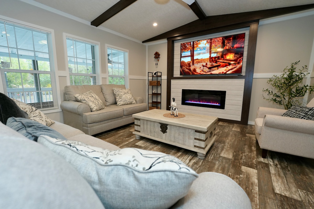 Escápate a nuestra cabaña de hermoso diseño, donde el lujo moderno se une a la diversión familiar. Ubicado en un entorno tranquilo, este refugio es perfecto para familias multigeneracionales o amigos que buscan comodidad y tiempo de calidad. Es una cabaña espaciosa, tranquila y moderna. Todo NUEVO por dentro: cocina y baños. Perfecto para pasar tiempo con amigos y familiares. Tiene un parque privado para niños y también puedes hacer barbacoas. La propiedad tiene un hangar cerrado que se adapta a un barco y es de 2,5 acres. Marina a 22 millas de distancia.