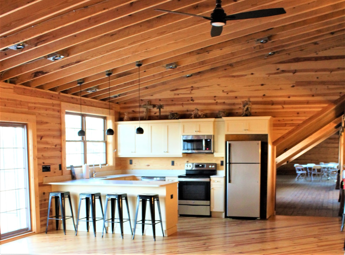 Como uno de nuestros dos apartamentos en la parte superior del granero, puedes disfrutar de una experiencia en la granja y del estanque de 2 acres con un muelle. Ubicados en una granja de 16 acres, estos espacios recién renovados están encima de un espacio de granero adorablemente remodelado hecho para el entretenimiento. El apartamento tiene 1 dormitorio, medio dormitorio con cama tamaño queen extraíble, 1 baño con un balcón con vistas al bosque. Baja las escaleras y estarás «frente al lago» en nuestro estanque... disfruta del sol y pesca y suelta.