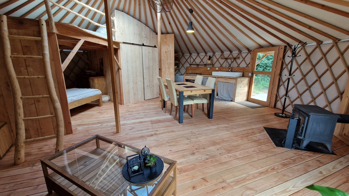 ¡Vive una experiencia única en plena naturaleza! Ofrecemos en alquiler una cómoda yurta para 4 personas, ideal para una estancia relajante y exótica. Equipamiento: Inodoros secos ecológicos Ducha privada Cocina equipada para que pueda preparar sus comidas con total autonomía Disfruta de un alojamiento original que combina comodidad y sencillez, ubicado en un entorno tranquilo, cerca de la naturaleza. Perfecto para un fin de semana en pareja, una escapada relajante o una estancia insólita.