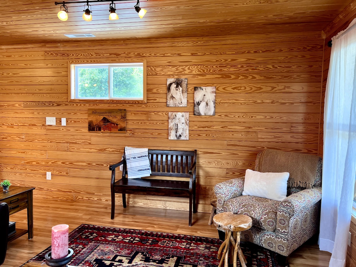 Descubre este encantador loft sobre las oficinas del establo, con impresionantes vistas de caballos pastando en prístinos pastos y montando en la arena de tamaño completo. Este santuario de 56 metros cuadrados con baño completo cuenta con una lujosa cama tamaño king, una encantadora sala de estar y una terraza privada perfecta para sumergirse en el magnífico paisaje que lo rodea. ¡Disfruta de la tranquilidad más absoluta en este acogedor refugio situado en el corazón de uno de los ranchos más espectaculares de Georgia!