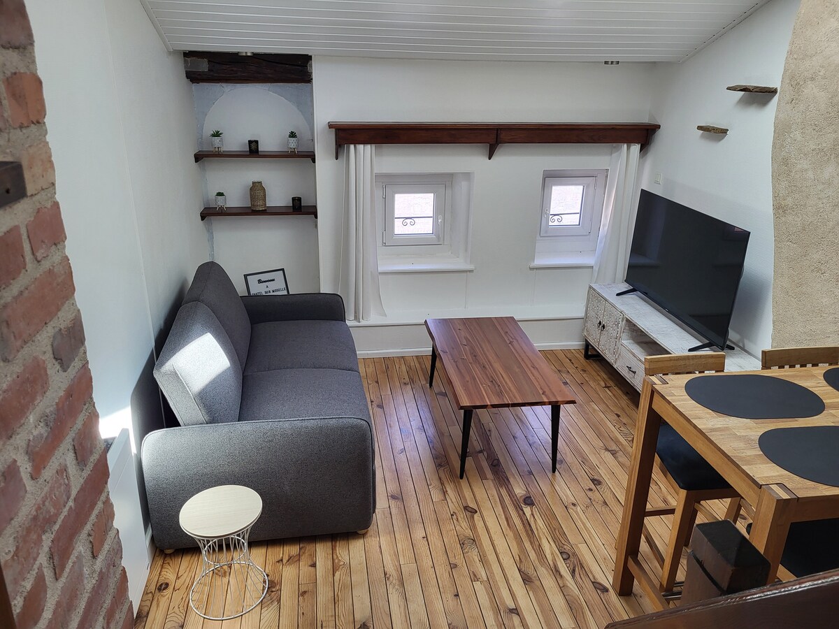 En la tercera y última planta de un edificio con patio interior. Situado en una plaza tranquila con fuente al pie del castillo y sus murallas (vista a una torre desde el salón). Escalera de caracol de época. Aparcamiento gratuito en la plaza. A menos de 2 minutos a pie: tienda de comestibles, bar, oficina de correos, peluquería, farmacia, médicos... A menos de 10-15 minutos a pie: panadería, estación de tren, supermercado, floristería, vía verde, estanques. A 15 minutos en coche de Épinal, a 35 minutos de Nancy y a 45 minutos de Gérardmer.