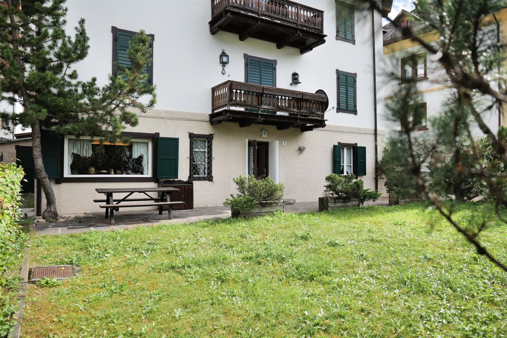 En una de las calles más prestigiosas de Cortina d'Ampezzo, muy céntrica y a unos 60 metros (menos de 1 minuto a pie) de Corso Italia, la principal calle peatonal, encontrarás nuestra encantadora parte de la villa, caracterizada por la arquitectura clásica de la casa de montaña con interiores y varias boiseries de madera. Luminosa, con acceso independiente y jardín privado, cuenta con 3 habitaciones dobles con capacidad para 6 personas, todas con baño privado, así como dos plazas de aparcamiento de uso exclusivo.