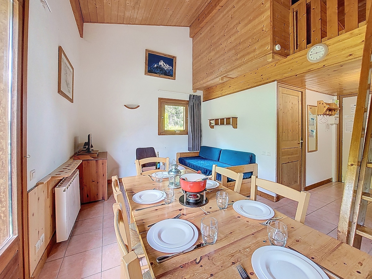 ¡MAGNÍFICA VISTA! Pequeño chalet de 45 m2 con una bonita terraza privada de 14 m2, muy soleada en el corazón de un espacio natural. Alojamiento bien situado en una zona tranquila a 5/10 minutos a pie del centro del pueblo y de los remontes, tiendas, piscina, pista de hielo, parque deportivo, paradas de autobús (200 metros). Gran ventanal, cocina equipada, 2 dormitorios, salón con sofá cama, baño y aseo, 1 plaza de aparcamiento. Alquiler de ropa de cama opcional de pago bajo reserva (sábanas y toallas).