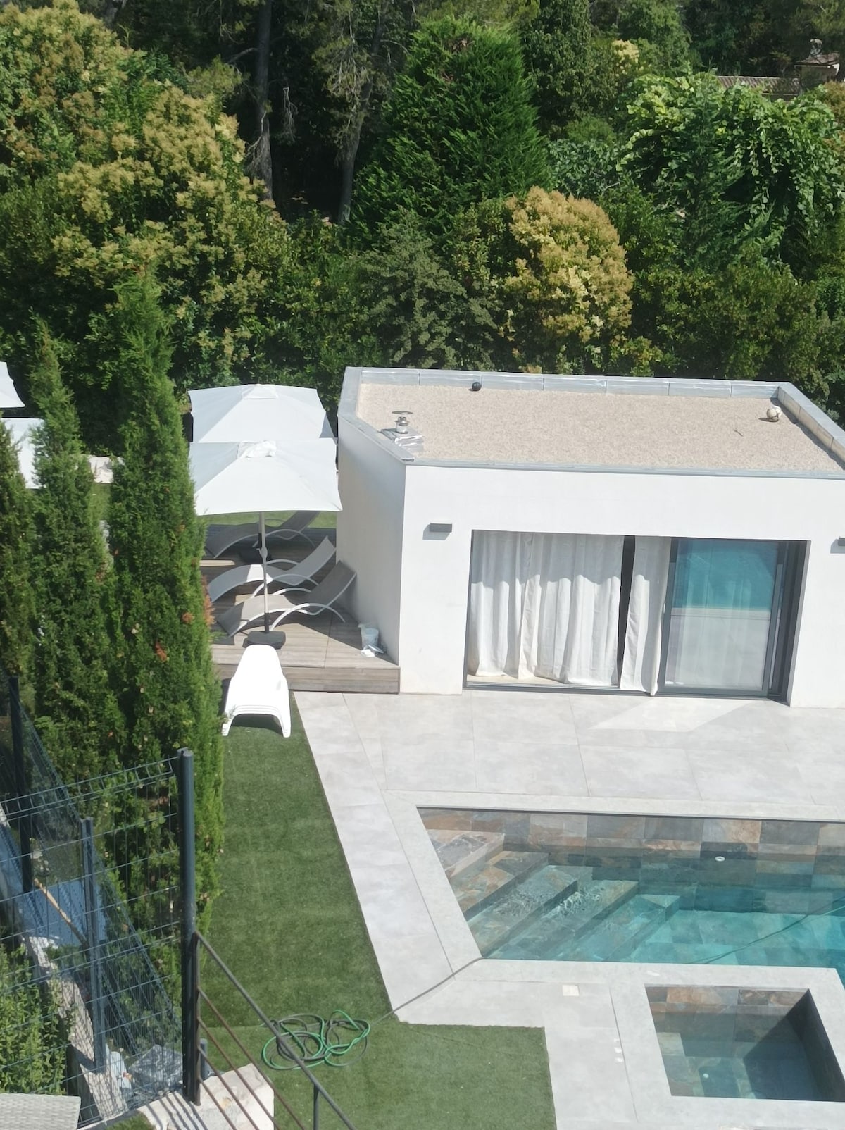 Nuestra casa de huéspedes se encuentra en un entorno verde al pie del mundialmente famoso pueblo de Mougins, en una de las zonas más bonitas de Mougins, cerca de campos de golf, tenis... La diseñamos con pasión para que nuestros huéspedes sientan el ambiente relajante y lujoso que ofrece. Es un lugar de calma y tranquilidad donde no se permiten fiestas ni recepciones...