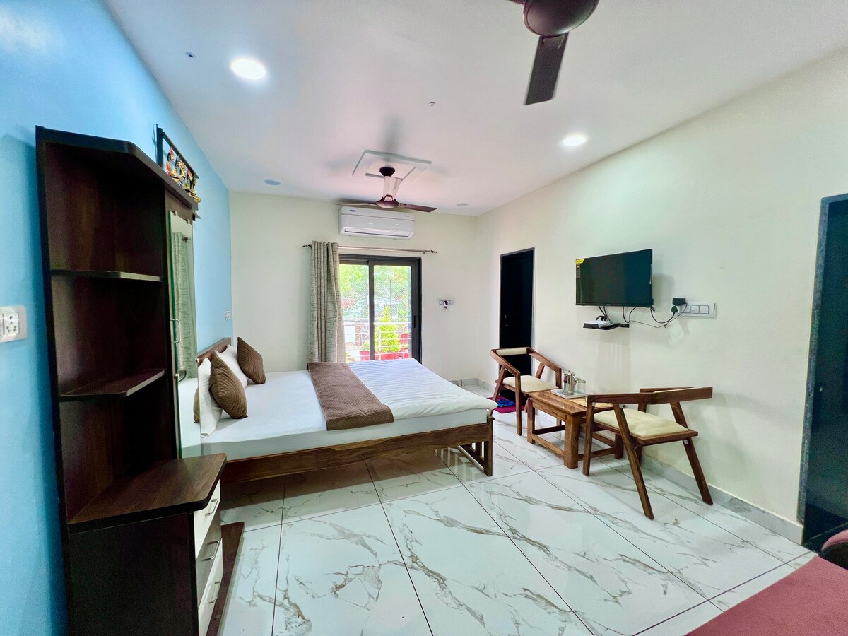 Rodeado de montañas verdes, cielo azul claro y aire de montaña limpio, fresco y frío, lejos de las bocinas de los vehículos y la multitud de personas, aquí se siente un profundo sentido de integridad con la naturaleza. Servicios de la habitación: aire acondicionado, geyser, tetera/cafetera con suministros, cama doble, TV, baños adjuntos, armario, tocador, mesa y silla, aparcamiento gratuito, zona común para sentarse al aire libre. Perfecto para familias y parejas. ¡Tómate un descanso, ven, quédate y siéntete uno con la naturaleza y recárgate!