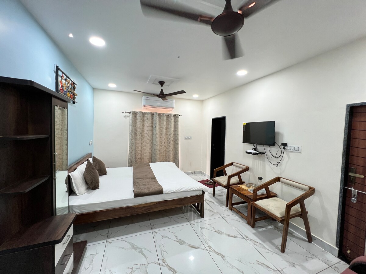 Stylish and comfortable accommodation You get One private room includs 🛌🏻One double bed 🚿🚽🧻🧴🧼Attached bathroom Why Kiki 🚶🏻♂️Walking distance from Delwara Jain Temple and Aadhar Devi Temple 🚶🏻♂️ Walking distance from restaurants, grocery shop and wine Shop. 🚶🏻♂️ 2/4 wheeler hier on request. 🍱🥞🥪🍕🌯🌮 Food delivery from Restaurants. 🌇City centre only 3 km away. 📍Easy access from main Delwara Road 📍Well connected and convenient location 👉🏻 We do not have kitchen 🙏🏻