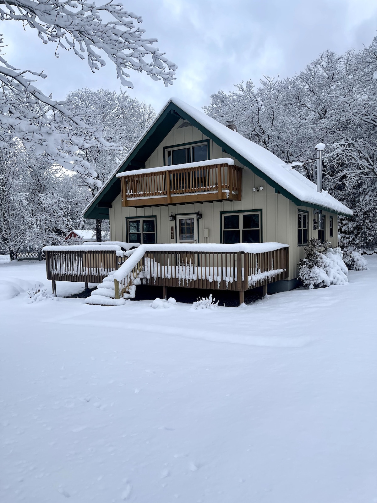 Residencia MUY romántica favorita para los huéspedes... ¡La casa del árbol Honey Pond está hecha para ti y los tuyos! ¡Está construido con todos los materiales naturales, tiene vistas impresionantes y está equipado con absolutamente todo lo que necesitas! Levantado en lo alto de un estanque de truchas abastecido en los abedules...Disfruta del jacuzzi privado, el tiempo de la sauna, la natación y la hamaca. ¡La claraboya fue diseñada para observar las estrellas en la cama! ¡A pocos minutos de las pistas o disfruta de nuestros propios senderos preparados para Xcountry, raquetas de nieve y paseos por la naturaleza! Wifi de alta velocidad. 🐣