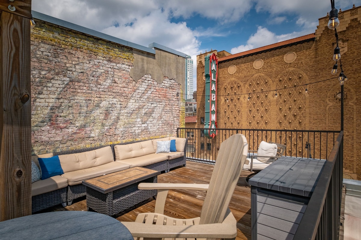 Situado en el distrito de los teatros, frente al Alabama Theater y el Lyric. Este increíble loft está bellamente decorado con una terraza privada MUY grande en la azotea, asientos al aire libre y una mesa de granja de gran tamaño para comer al aire libre. A poca distancia a pie de restaurantes galardonados. Este loft es perfecto para tu próximo viaje a Birmingham. ¡No hay que hacer nada en el momento de la salida! Pedimos que cualquier lugareño proporcione información adicional sobre los huéspedes y el motivo de la estancia. No permitimos fiestas ni huéspedes no registrados.
