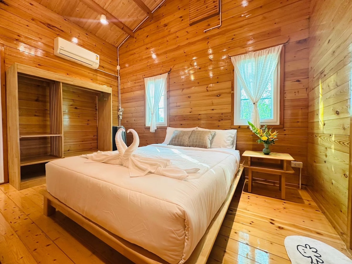 Cabaña privada y tranquila en medio de cocoteros y árboles frutales tropicales. Rodeada de jardines y estanques, la zona está repleta de una gran variedad de árboles y flores. Completa tu ambiente de vacaciones y relajación con actividades en interiores como paseos en bote, recolección de frutas y barbacoas al aire libre, y también hay una cocina comunitaria para usar. Está a solo 1,5 horas del aeropuerto de Suvarnabhumi.