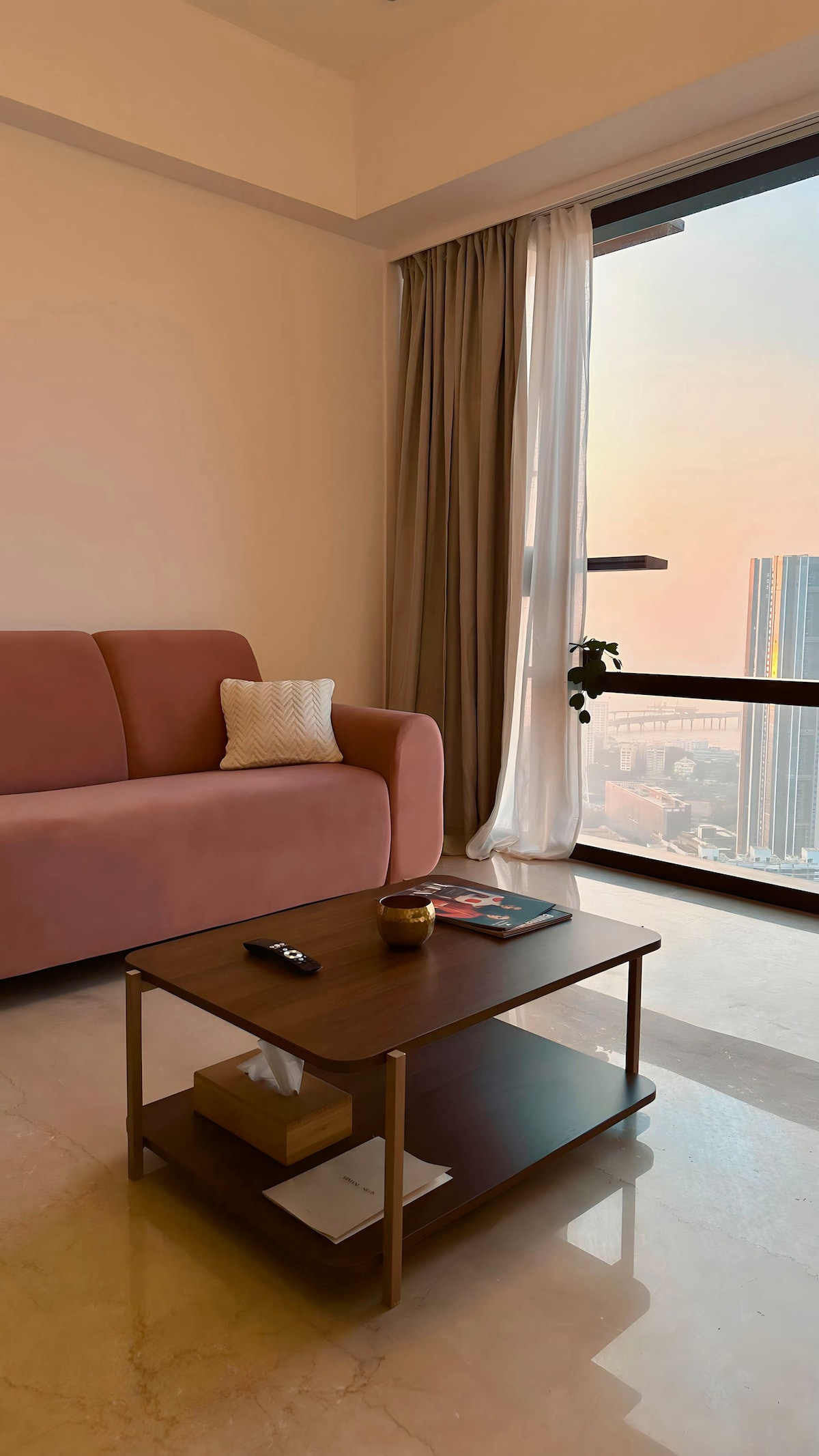 Este brisa 4BHK combina el lujo de un hotel estrella con la comodidad y privacidad de un alojamiento a un precio asequible. Rodeado de los mejores restaurantes de la ciudad, cafeterías vibrantes y tiendas premium, su ubicación inmejorable, servicios cuidados y elegantes interiores lo convierten en una de las mejores opciones para cualquiera que busque una estancia inolvidable en Bombay A solo 2 minutos a pie de la icónica playa de Juhu, este apartamento te invita a despertarte con la suave brisa marina y terminar tus noches con relajantes paseos junto a la playa.
