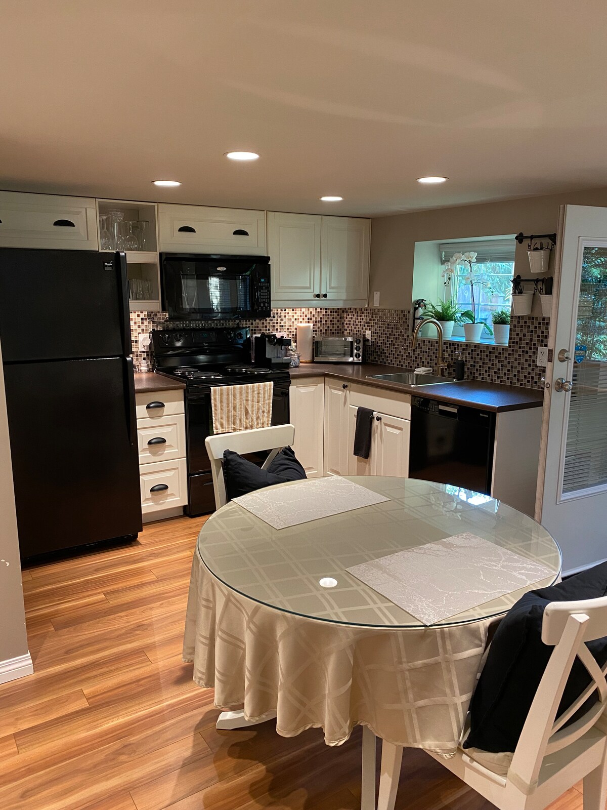Una suite espaciosa con un hermoso jardín que cuenta con cocina completa, área de comedor y sala de estar de concepto abierto y un baño privado. Duerme bien en una cama tamaño queen con sábanas blancas y almohadas celestiales. Disfrute de wifi gratuito, vea sus películas favoritas de Netflix en un televisor enorme y relájese junto a una cálida chimenea eléctrica. ¡El café de la mañana y las botellas de agua son de cortesía! Ubicado en un barrio tranquilo con estacionamiento gratuito. A 20 minutos en auto desde/hacia la terminal de ferry de Tsawwassen. A 30 minutos en auto desde/hacia el aeropuerto YVR.