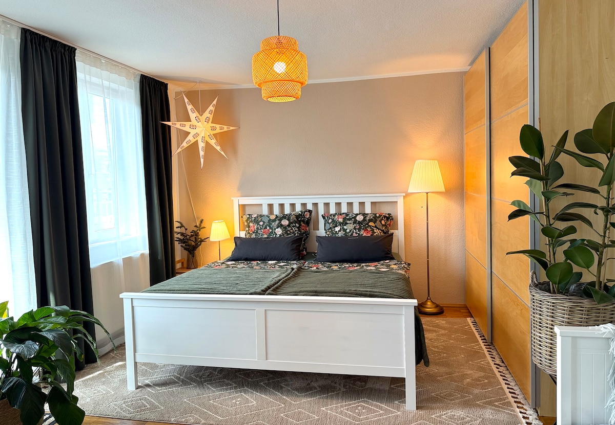 Acogedor, luminoso y con estilo, apartamento recién amueblado: Dormitorio moderno +1 dormitorio con cama boxspring de alta calidad y Smart TV Sala de estar + Asientos acogedores y TV Cocina totalmente equipada + Con un acogedor comedor con 4 sillas + Aceite, café, té, sal, pimienta, Baño moderno + Con ducha, inodoro, lavabo y 2 ventanas En el camino + Aparcamiento y bicicletas disponibles de forma gratuita + Centro de la ciudad rápidamente accesible en bicicleta, coche y autobús.