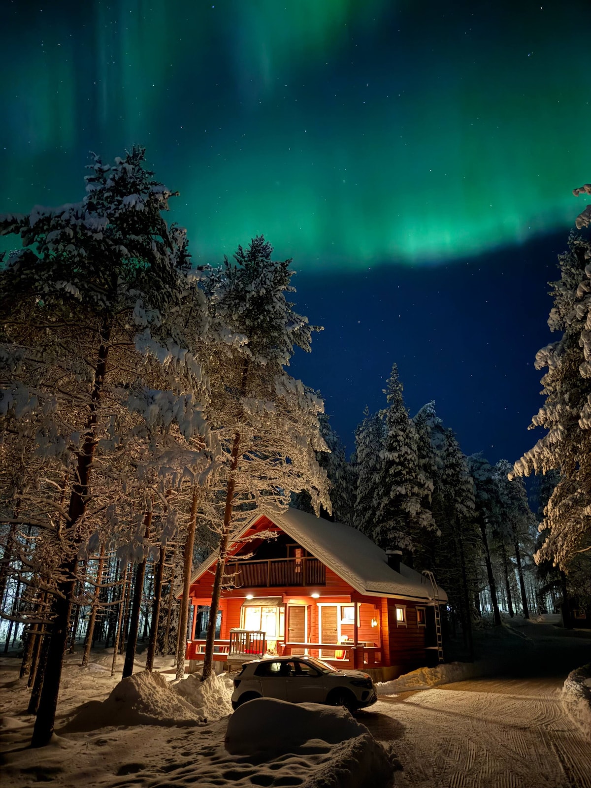 Auténtica cabaña de troncos finlandesa lejos de las masas turísticas y la contaminación lumínica con vistas a los montes Pallas. La cabaña se calienta con electricidad, pero también hay una chimenea que da calor y crea un ambiente agradable y acogedor. La leña está incluida en el precio. La naturaleza comienza justo cuando sales. No hay contaminación lumínica, por lo que el cielo es muy claro. Si la aurora boreal está en el cielo, puedes verla desde la puerta de tu casa. El lago Jeris está a 1 km. Hay wifi en la cabaña.