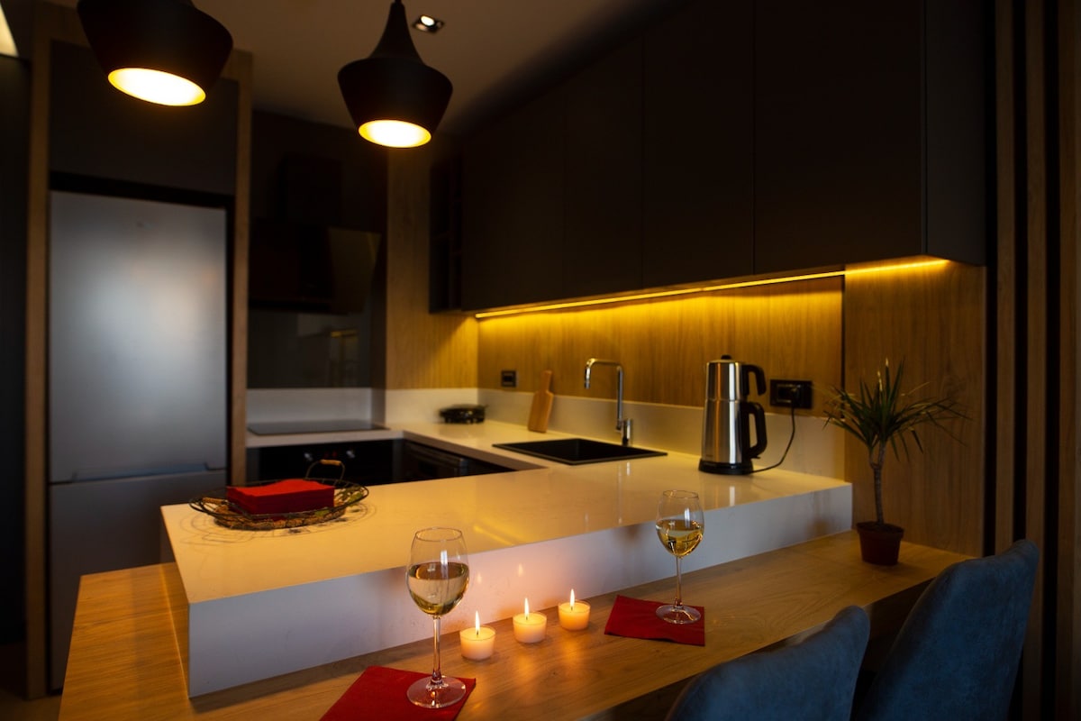 Ubicado en el centro de Antalya, este moderno apartamento 2+1 te permite relajarte en tu jacuzzi privado después de un largo día, cocinar tus propias comidas en la cocina totalmente equipada o explorar las cafeterías y restaurantes cercanos de la ciudad. Hay tiendas, paradas de transporte público, cafeterías y restaurantes a poca distancia. Un alojamiento ideal para unas vacaciones, un viaje de negocios o una escapada romántica, que combina una ubicación céntrica, un diseño moderno y el lujo de un jacuzzi.