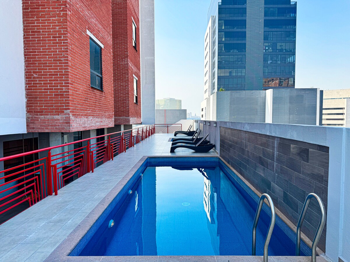 Loft con Alberca, Coworking, Gimnasio, Rooftop