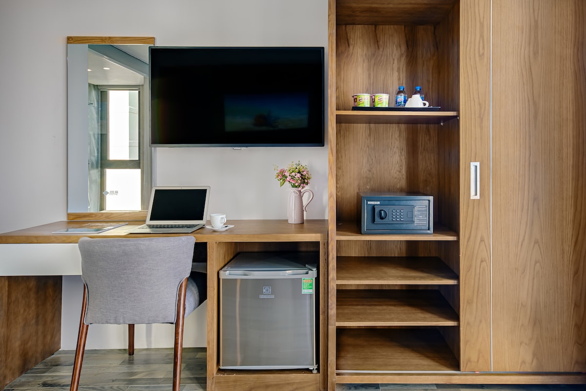 Situada en el corazón de la ciudad de Da Nang, la habitación Deluxe tiene unos 30 m² con un balcón privado y grandes ventanales, que proporcionan un espacio lleno de luz natural. La habitación tiene muebles juveniles de diseño moderno con un escritorio, ideales tanto para el descanso como para los negocios. El baño está separado, limpio y cómodo, desde el balcón, puedes relajarte y disfrutar del aire fresco de la ciudad. Solo necesitas unos minutos para caminar por los lugares divertidos, la famosa comida local o caminar hasta el Puente del Dragón.