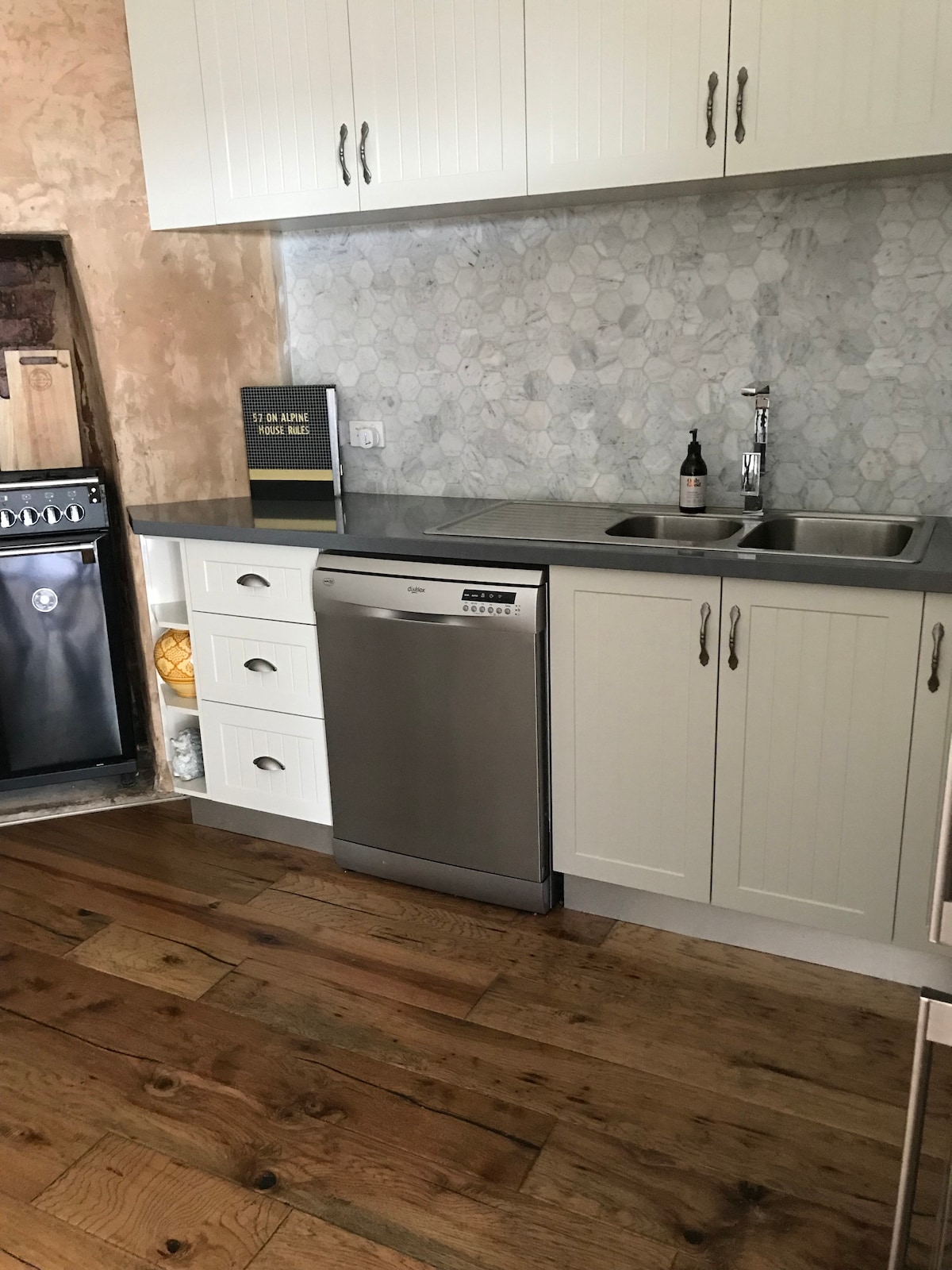 Situada en la región gourmet de Milawa, la casa es ideal para visitar la región vinícola de King Valley, Beechworth y Bright. Desde la comodidad del porche trasero disfrutarás de vistas al olivar y más allá de los prados a potreros con ovejas y corderos. Las delicias dentro de la casa de campo incluyen una ducha de agua de lluvia, bañera, chimenea, una máquina de café expreso y ropa de cama súper cómoda. Nuestra casa de campo recientemente reformada ama el medio ambiente y utiliza agua de lluvia, energía solar y muebles europeos antiguos.