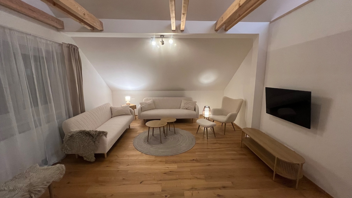 Ofrecemos un alojamiento confortable con ambiente familiar. Nuestro pequeño pero muy acogedor apartamento en el ático se encuentra justo debajo de la pista de la estación de esquí Marta II. El apartamento n.º 152 está situado en la planta superior del edificio de apartamentos n.º 438 y gracias a ello tiene una vista única de la pista. Una gran ventaja es el ascensor, que permite el acceso sin barreras al apartamento. Para una estancia relajada, recomendamos nuestro apartamento para 2 adultos con un máximo de 2 niños.